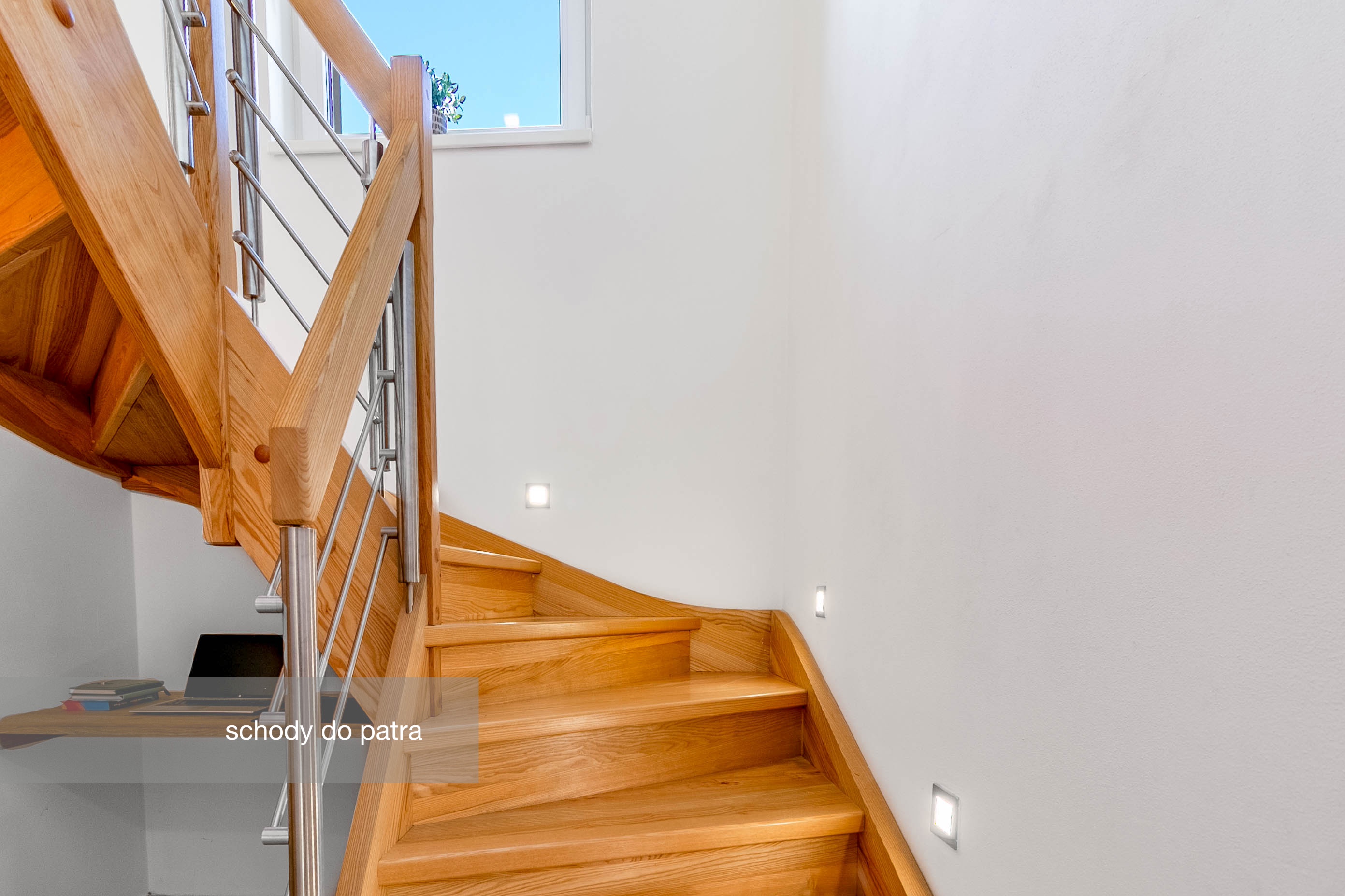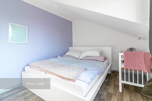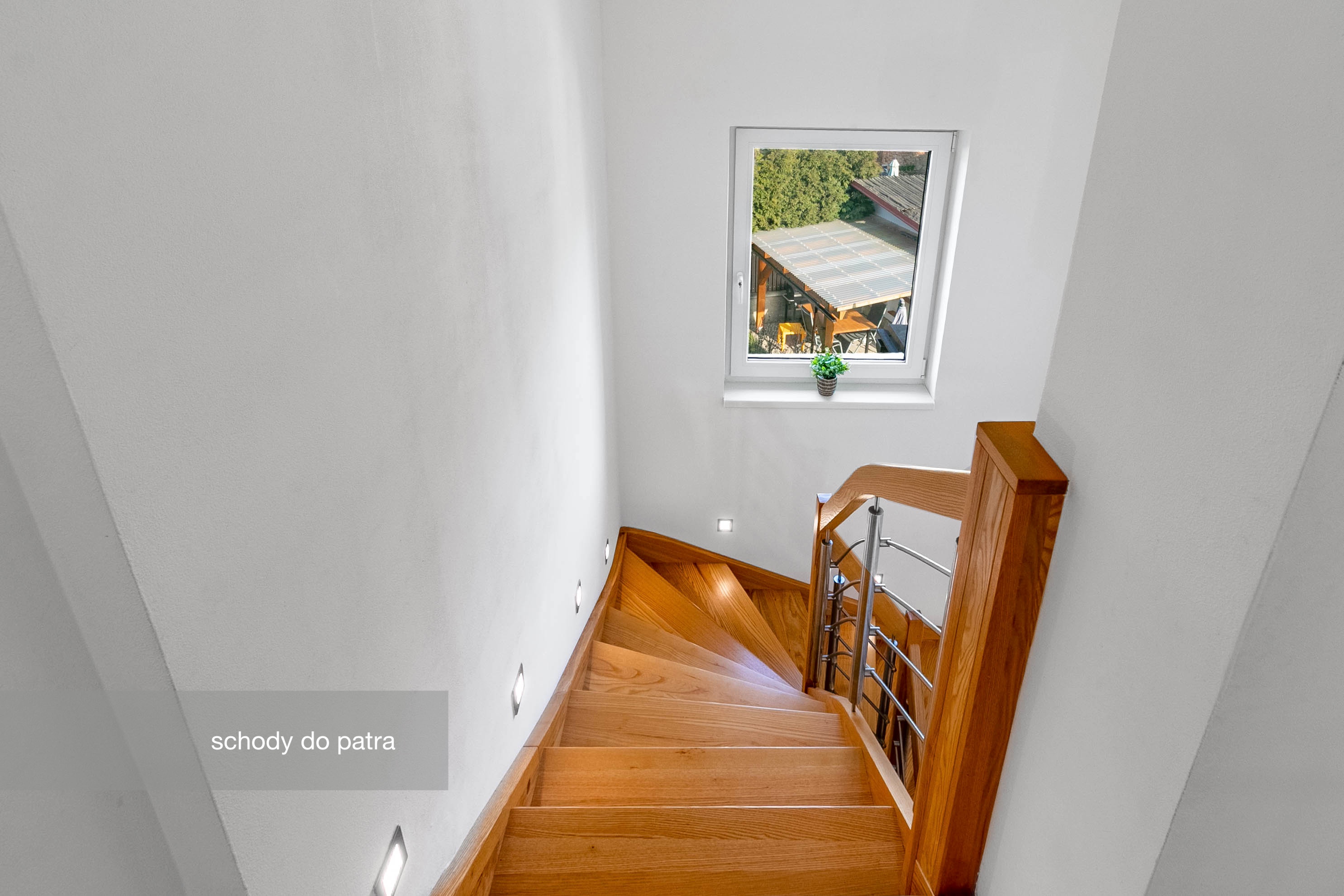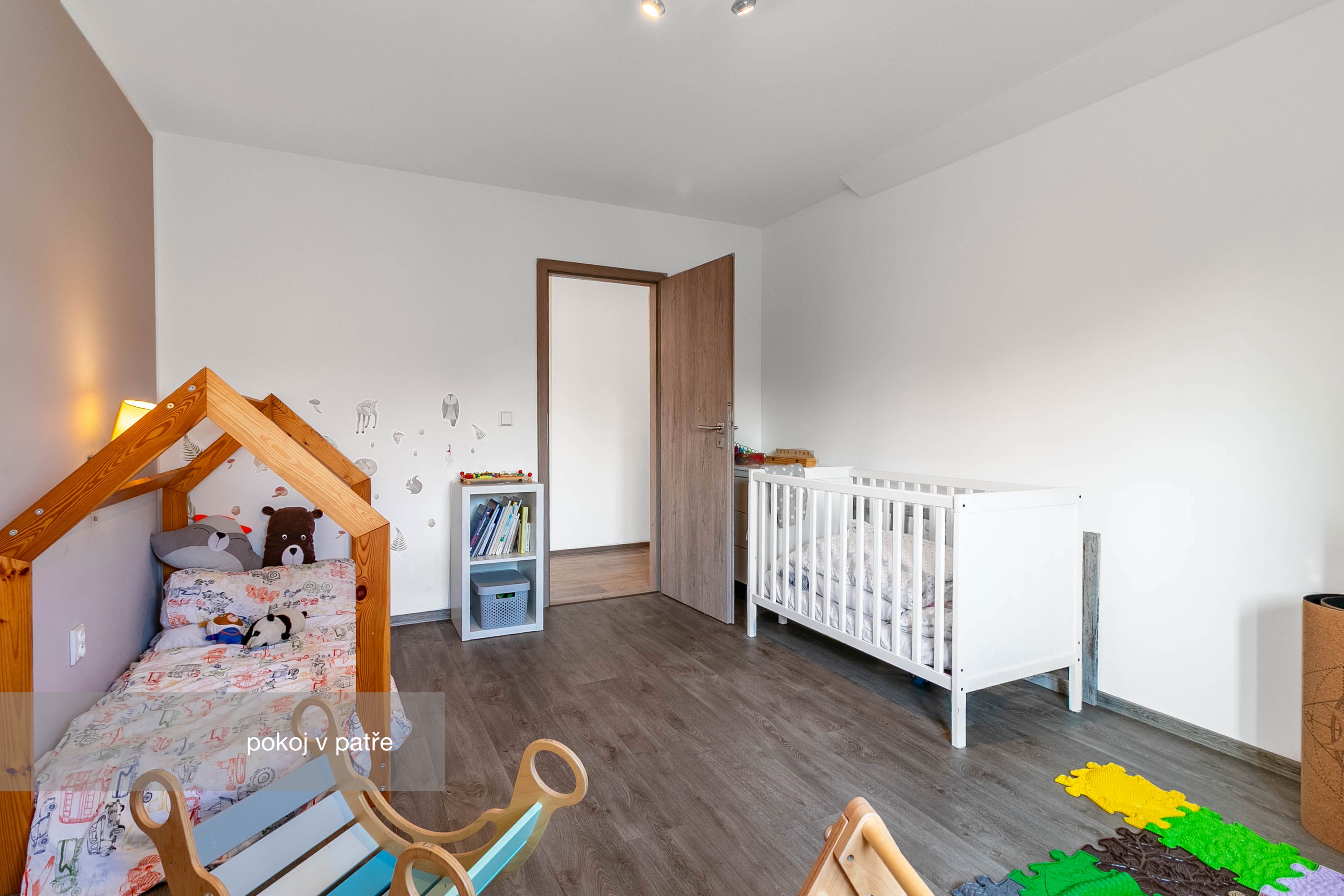 Dům je dvoupodlažní o dispozici 3+1 s užitnou plochou ............ m² a je kompletně podsklepený. První podlaží tvoří předsíň, koupelna, jídelna propojená s kuchyňským koutem, obývací pokoj, technická místnost a WC. Ve druhém nadzemním podlaží jsou k dispozici dvě ložnice, šatna a koupelna a navíc díky prostoru pod schodištěm do patra vzniklo místo vhodné pro pracovní zázemí.