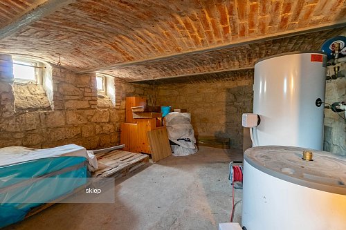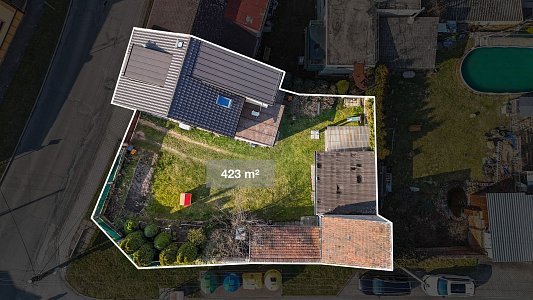 Dům stojí na pozemku o velikosti 423 m² a kromě domu zde najdeme původní stavby jako je menší stodola a garáž, které jsou v dobrém stavu. Dům je kompletně podsklepený. Sklep je tedy prostorný, čistý a suchý.