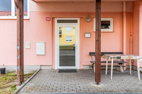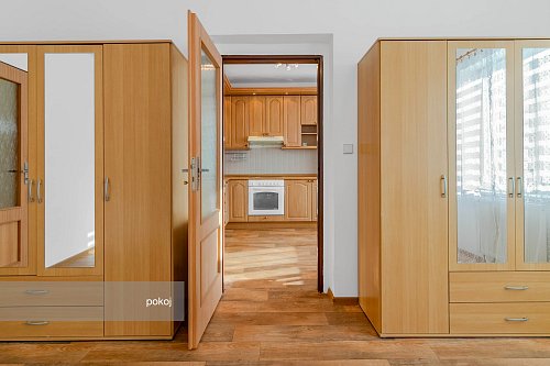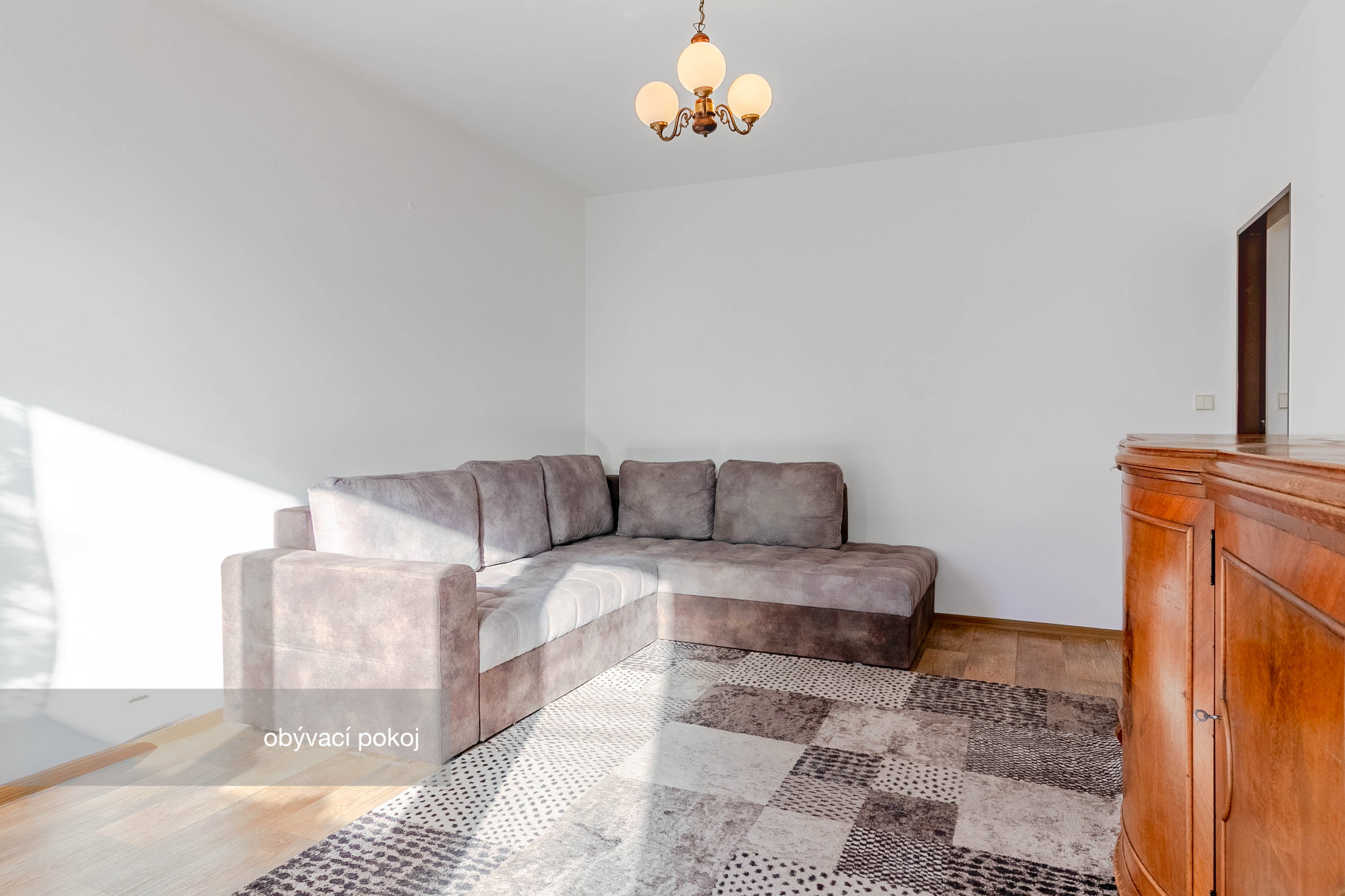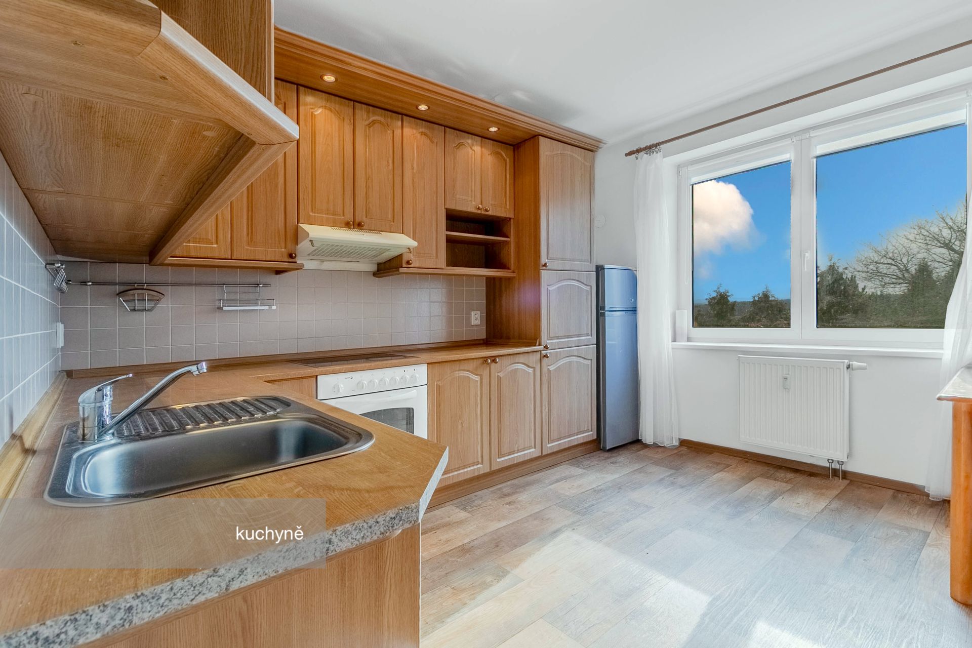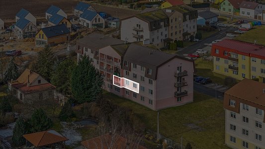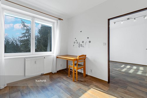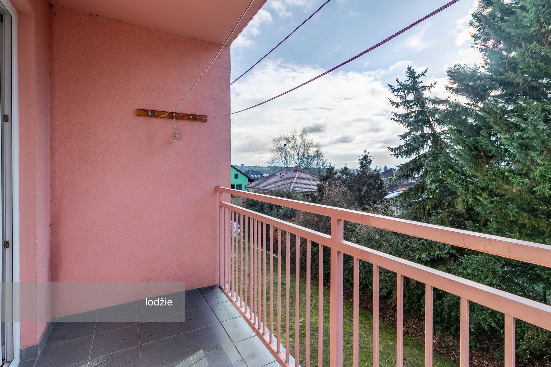 Byt je umístěný v 1. patře domu a má dispozici 2+1. Jeho výměra je 65 m2 včetně lodžie. Všechna jeho okna směřují do zeleně na jihovýchodní stranu, včetně prostorné lodžie přístupné z obývacího pokoje. Byt je ve výborném stavu, který umožňuje okamžité bydlení bez nutnosti jakýchkoliv dalších úprav.