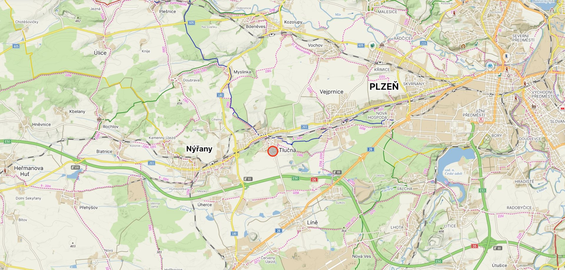 Dům je zděný a byl postaven v roce 2002. Je situovaný v lokalitě Na Čampuli na okraji Tlučné a přitom pár kroků od centra, od autobusové i vlakové zastávky a veškeré občanské vybavenosti, kterou Tlučná nabízí. Autem jsme z Plzně v Tlučné za 10 minut. Na dálnici D5 směr Praha - Rozvadov za 5 minut.