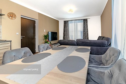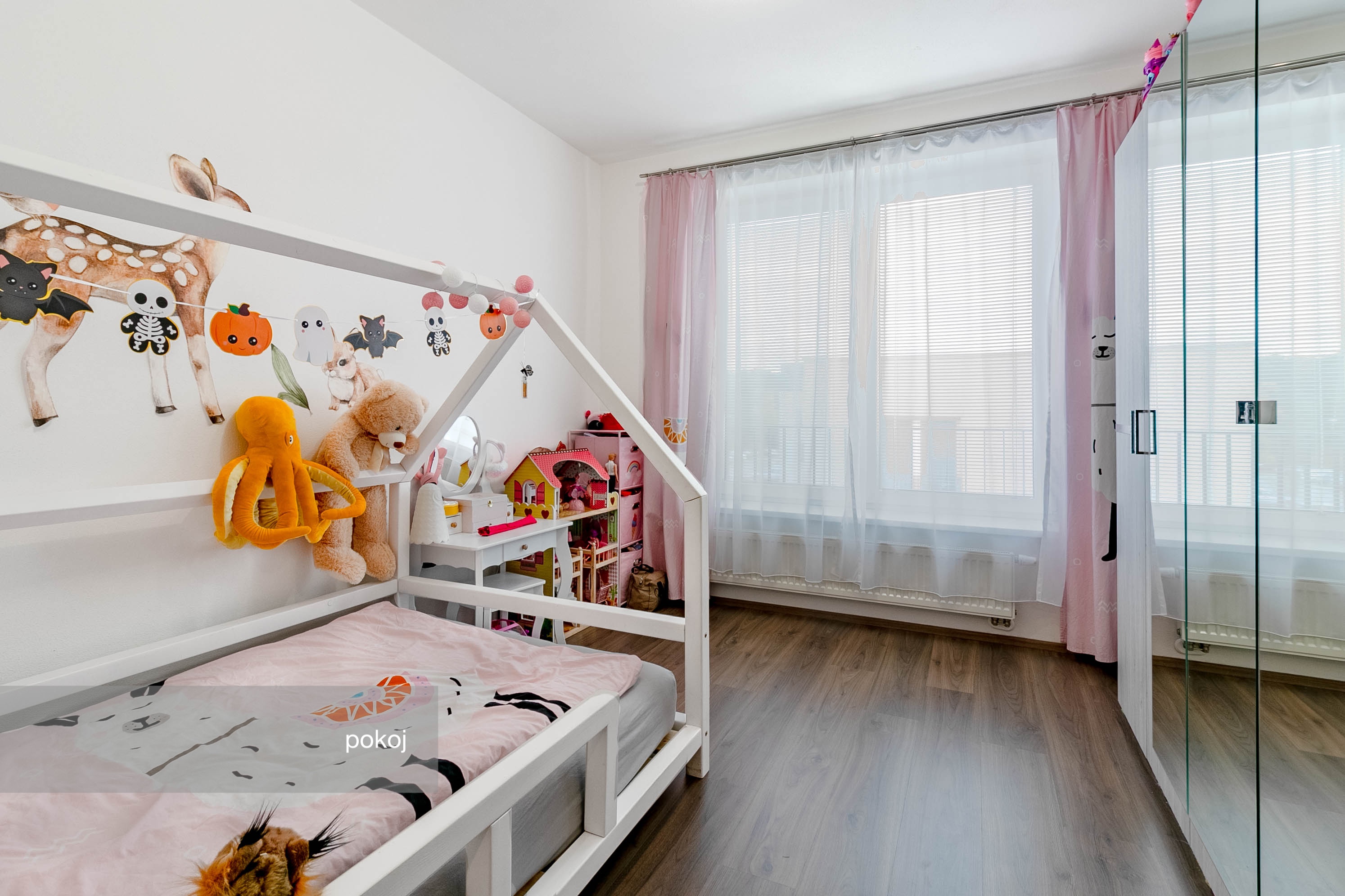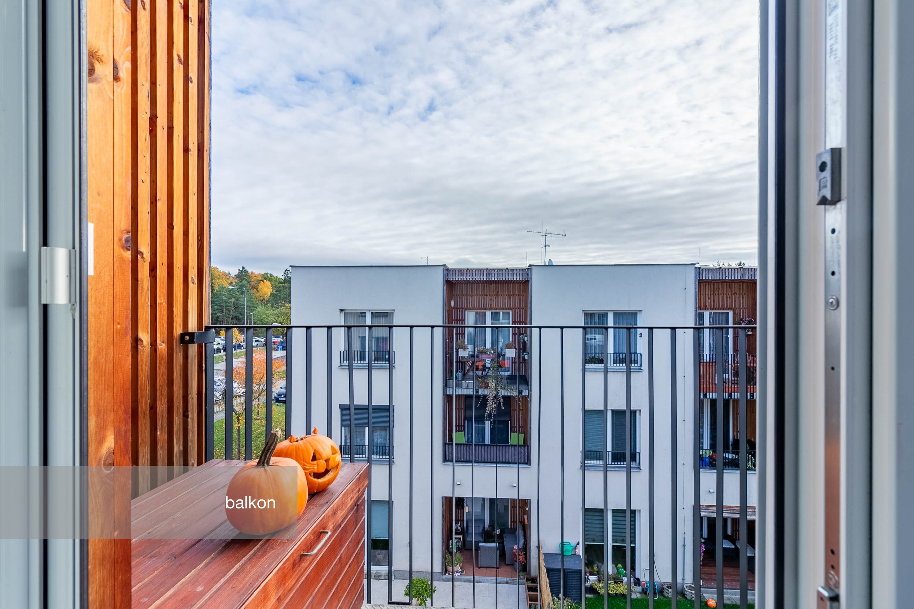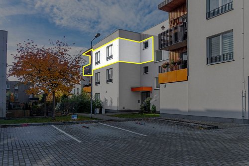 Byt má výměru 76 m2. Je umístěný ve 2. patře novostavby z roku 2018. Patří k němu jak sklep/komora na patře hned vedle bytu, tak jedno venkovní parkovací stání před domem. Byt má vlastní balkon, orientovaný na jih. Od doby výstavby majitelé byt již jednou malovali, nechali nainstalovat sítě do oken a žaluzie. Kuchyňská linka je moderní, vybavená zabudovanými spotřebiči.