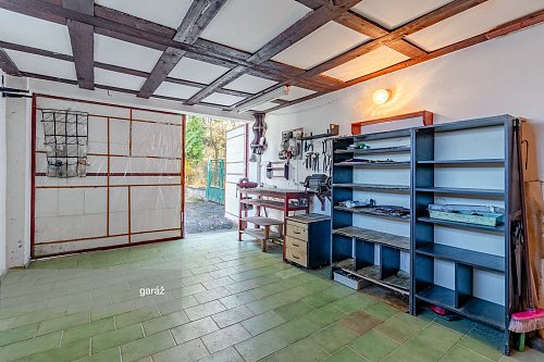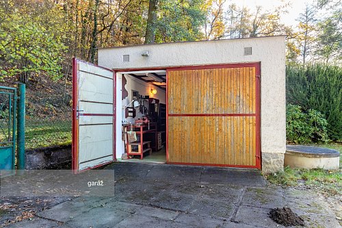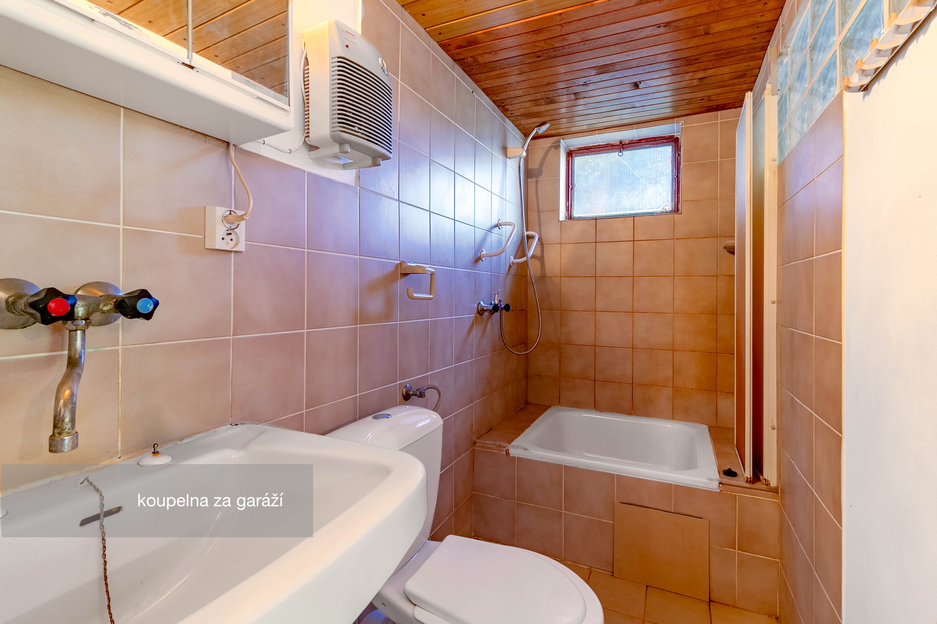 Voda je zavedená do koupelny v garáži z vlastního zdroje - studny.
