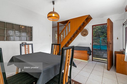 Chata byla postavena v roce 1972. Je obklopena vlastním pozemkem o velikosti 321 m2, na kterém stojí kromě chaty i garáž s vybudovanou koupelnou a malá kůlna. Chata je zděná, má jedno podlaží a podkroví. Její dispozice je 3+1 s tím, že po vstupu do chaty se ocitneme v jídelním prostoru s kuchyňkou, dále je možné vejít do obývacího pokoje a po dřevěných schodech se dostaneme do podkroví se dvěma pokoji. Chata byla v roce 2002 rekonstruovaná. Tato rekonstrukce spočívala ve změně dispozice, výměně vybavení, výměně podlah, nové výmalby, výměně kuchyňské linky. Chata se prodává včetně kompletního vybavení.
